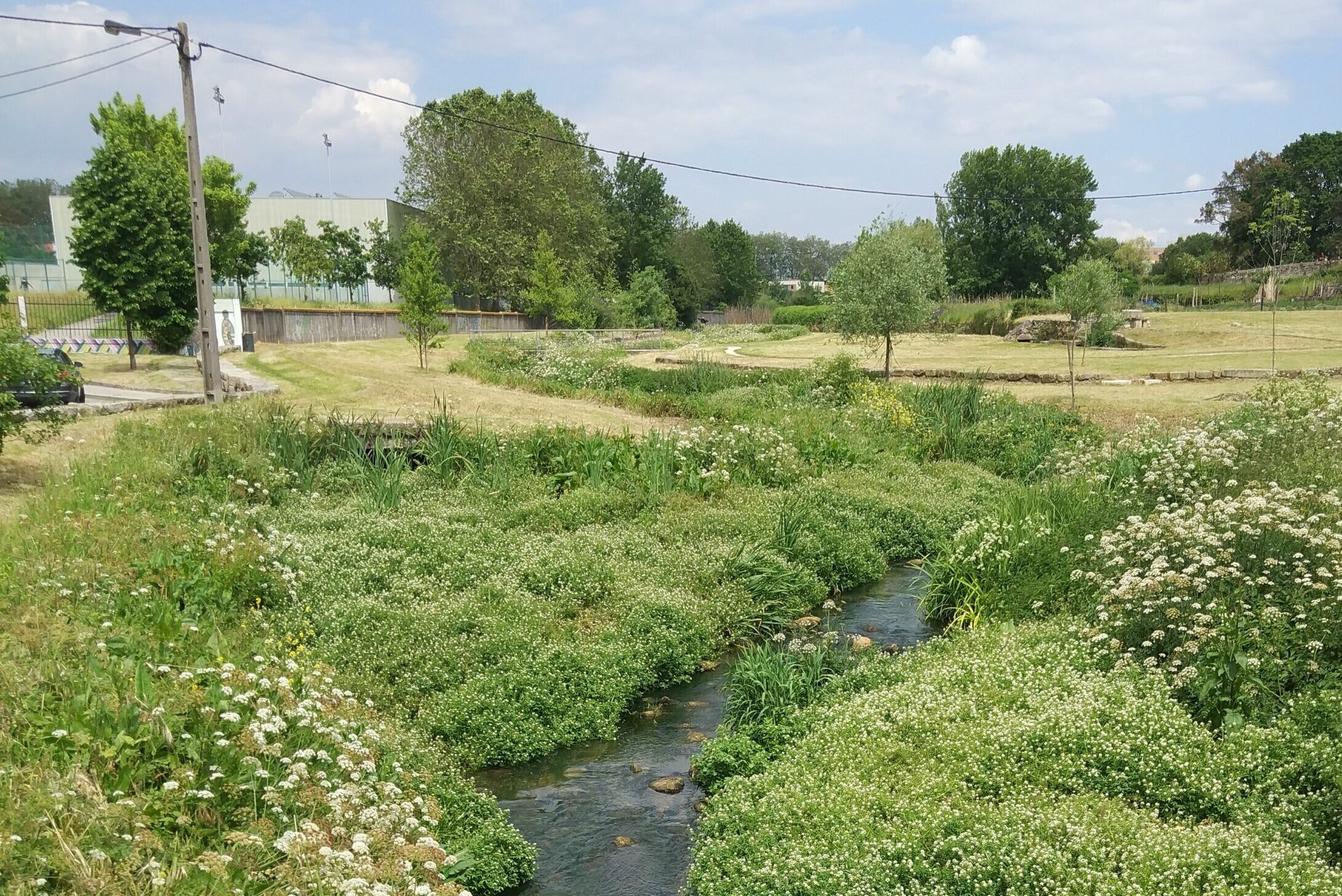 - Phase 3 – Ramalde do Meio section (2013): The third phase of the rehabilitation of the Ribeira da Granja consisted of the requalification of the bed and banks of the Ramalde do Meio section, between Rua Ramalde do Meio and Rua de Requesende. This intervention made it possible to establish a link between the Francos and Viso Metro stations, the Viso Middle School, Rua de Requesende, the Prelada housing neighbourhood and the Estrada da Circunvalação (EN12), making it possible to connect these different points in the city via a pedestrian and cycling circuit.