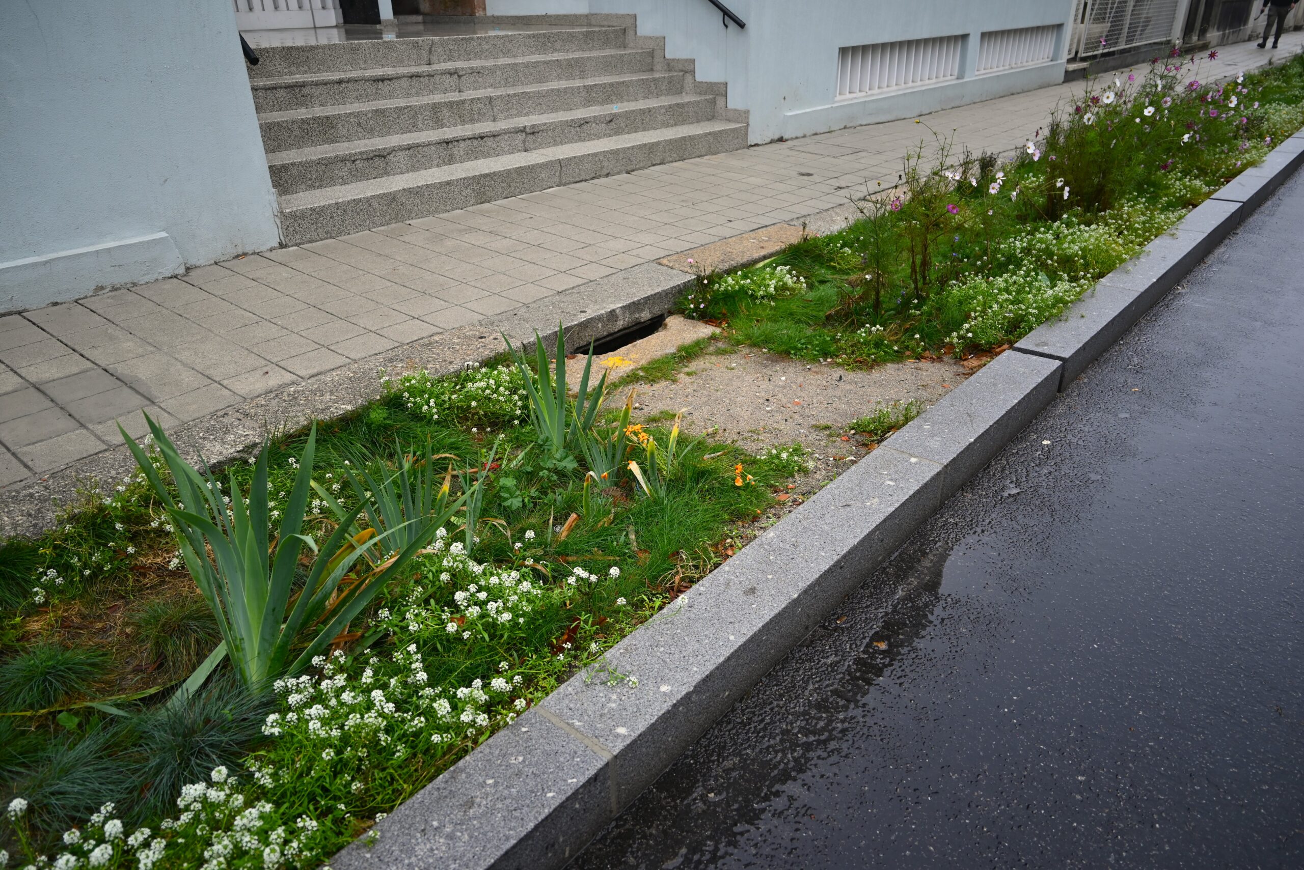 Esta faixa verde melhora o bem-estar e segurança dos peões, realiza um pré-tratamento da água pluvial a ser entregue na ribeira Poço das Patas, potencia a sua infiltração e contribui, simultaneamente, para resiliência e sustentabilidade dos recursos hídricos e rede de drenagem pública. Para além disso, em casos de precipitação extrema, toda a água que fica retida no jardim de chuva permite que não haja uma sobre acumulação de água na ribeira Poço das Patas (linha de água que se encontra totalmente entubada), evitando assim inundações urbanas na zona do Campo 24 de Agosto.