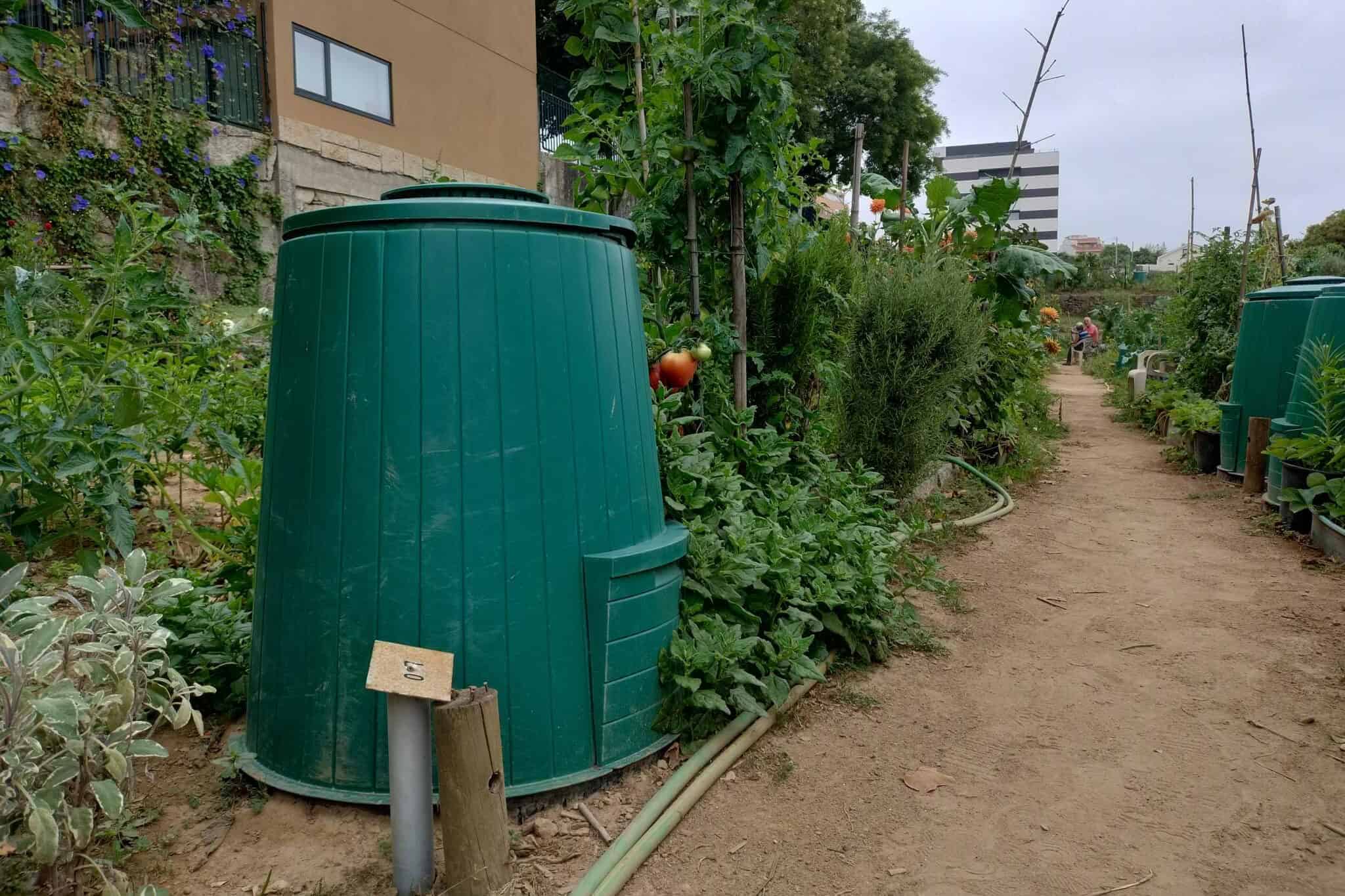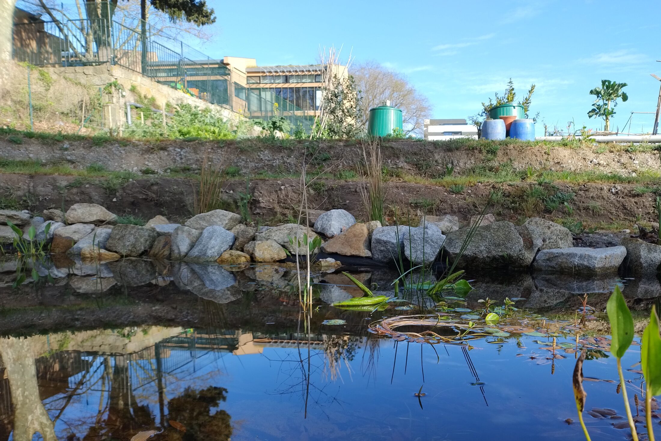 Esta horta integra também um charco, que é parte constituinte do projeto da Escola Básica do Falcão, que receciona as águas pluviais resultantes das coberturas verdes da escola.